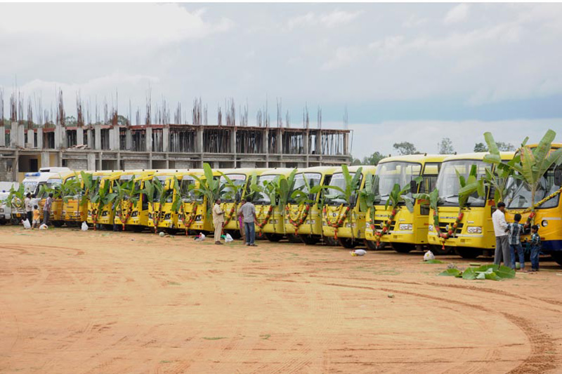 A fleet of buses and vans are available to all the students commuting between college and outside campus.